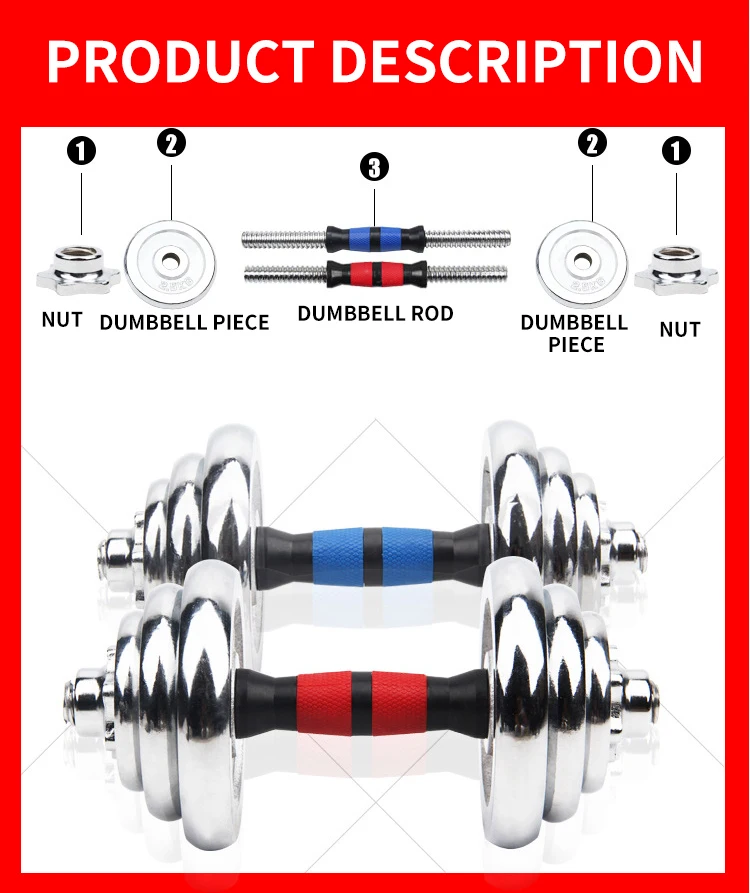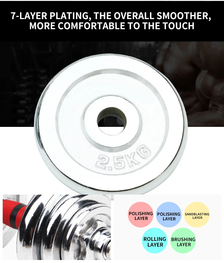 20KG Adjustable Weight Dumbells Fitness Dumbbell Electroplating Weight Bars Gym Dumbells Barbell Set For Men Body Building Home
