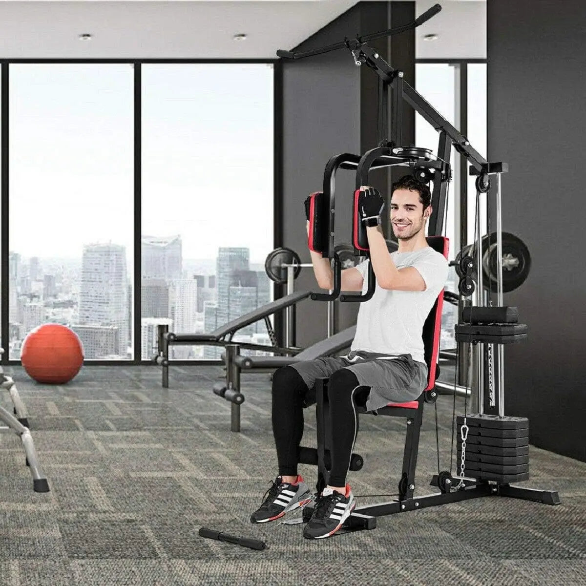 - High and Low Pulley System---This home gym has high and low pulleys that can be used for a wide variety of upper and lower body exercises. Total 12 pulleys provide a smooth fluid motion with every movement and strengthen various muscles throughout your back, arms and core.