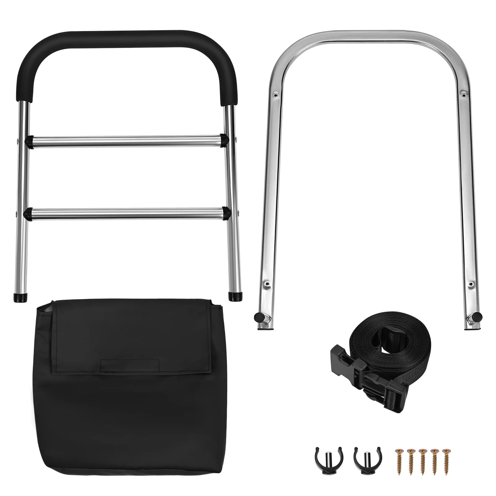Our bed assist rail is designed with pre-installed holes for quick installation in 3 steps, without the need for complicated installation tools. Step 1. Connect the 2 main frameworks. Step 2. Insert the C-bolt on each side. Step 3. Fix the storage bag with self-fasteners.
